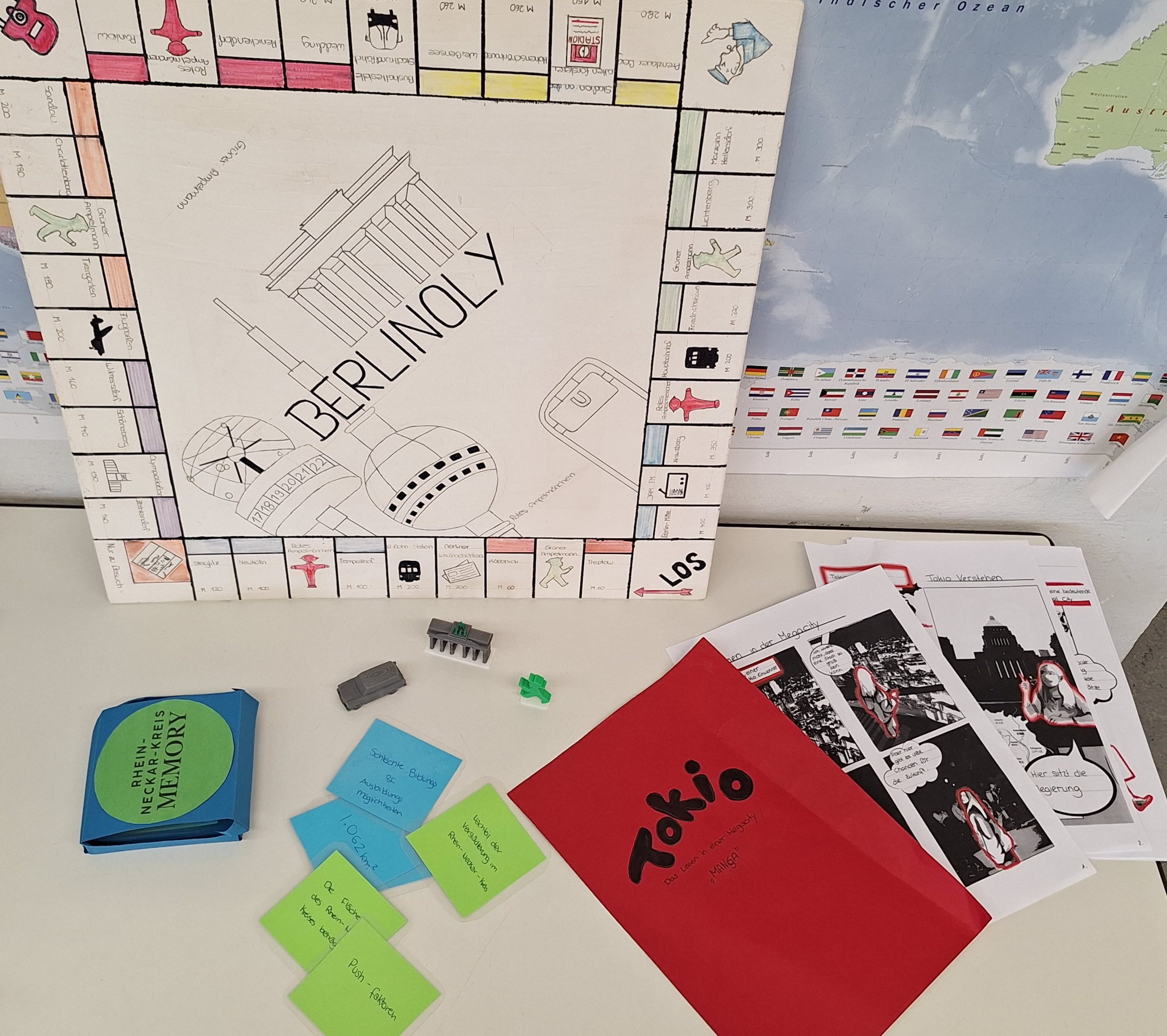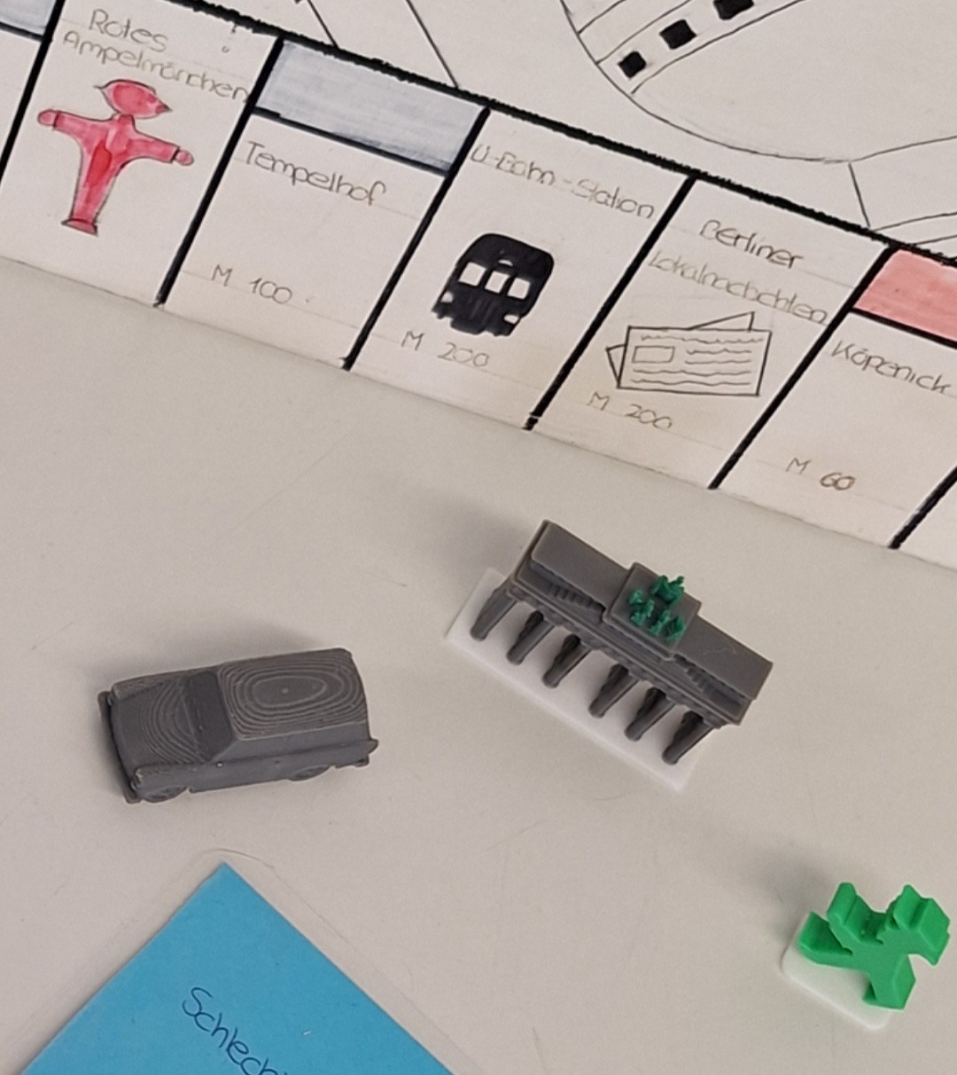 Eine Gruppe bastelte das Brettspiel Berlinoly und gestaltete dazu mit einem 3D-Drucker Spielfiguren in Form des Berliner Ampelmännchens und des Brandenburger Tors.